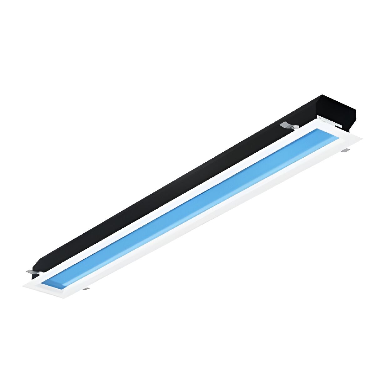 The VistaRay L is a slim, linear-style recessed LED skylight ideal for modern interiors where a sleek, elongated design is desired. It delivers the same immersive daylight simulation as other VistaRay models, but in a narrow, integrated form that blends seamlessly into suspended ceilings.