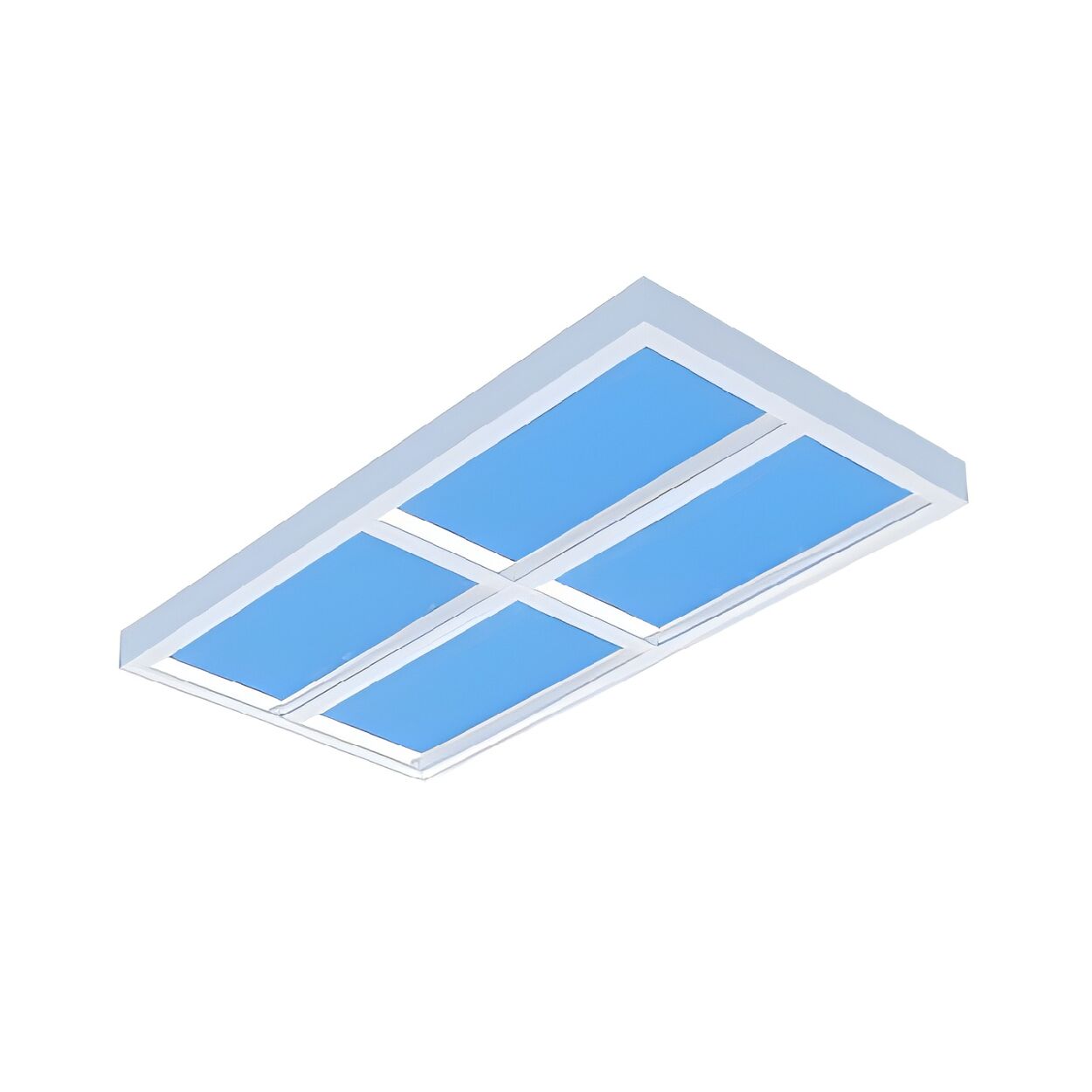 The VistaRay PL is a sleek, ceiling-mounted artificial LED skylight designed in an elongated rectangular format. It offers the same realistic daylight simulation and wellness-enhancing lighting as other VistaRay models, but tailored for installations that benefit from slender, linear forms.